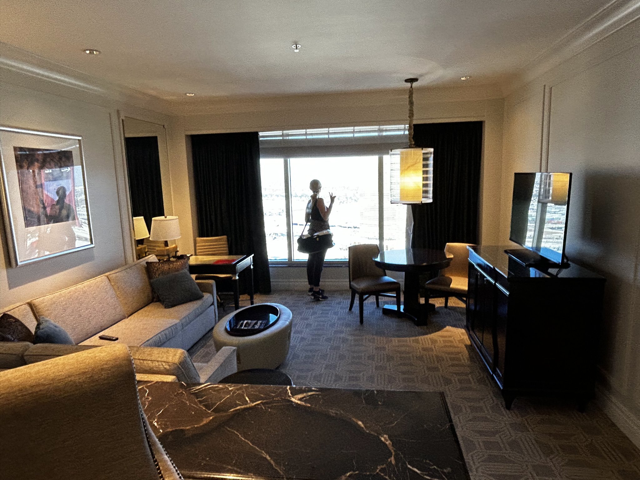 Our go-to spot is The Venetian / Palazzo, and for good reason. Every single room is a suite—the largest standard suites on the Strip, starting at around 650 square feet. It’s like having a little apartment to yourselves, complete with sunken living rooms, oversized bathrooms, and enough space to actually spread out.
